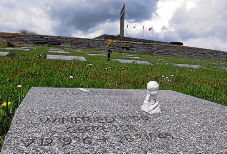 Zerbaitek ez luke hemen egon behar: eskaiolazko iruditxoa, Winfried Kipp gefreiter-a, 18 urterekin hil zena. •