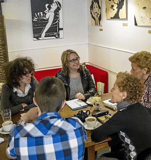 Indautxuko Kikarea Cofee and Bakery tabernan aukeratu dugun saiora heltzen lehenak Pilar eta Miren dira. Adinez taldeko beteranoenak dira, eta ikasle eta hiztun apartak. Ez dute arazorik kazetari eta guzti saio bat egiteko. Mahaian jesartzeko esan digute, gainontzeko partaideak berehala helduko direla. Terese agertu da segituan, eta heltzen hurrengoa Gabriella irakaslea izan da. Berantiarrena, Dani galdakoztarra, taldeko gazteena. Urrunen bizi dena ere bada, gainontzekoak Bilbo bertakoak baitira.