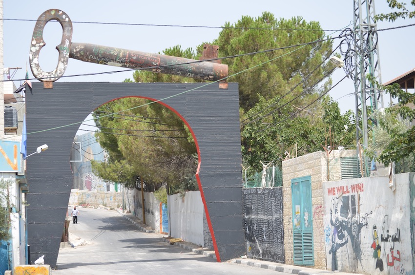 Sekula egon ez denak Betleemeko Aida Camp-eko errefuxiatu gunera iritsi bezain pronto lehen bihotz kolpea sentituko du. Errefuxiatu gunera sartzeko metalezko ate erraldoiaren gainean giltza erraldoi bat dago. Munduko giltzarik handiena. Palestinarrek euren lurrera itzultzeko duten esperantza islatzen duen sinboloa. Eskuinean, errefuxiatu gunera sartzeko ate erraldoiaren alboan, Israelek eraiki duen hormigoizko harresi erraldoia, eta apartheid-aren harresian, margoak: iragan udaran Israelgo Armadak hil zituen ia 300 haurrak oroitzen dituena, Aida Campeko preso politikoen askatasuna aldarrikatzen duena, Palestinaren Askapenerako Fronte Popularreko (PAFP) Laila Khaled buruzagi ezagunarena edota Euskal Herriaren eta Palestinaren arteko aspaldiko lotura irudikatzen duen murala. Azken hau, 2011n Euskal Herritik etorritako Biladi Hadi brigada kulturaleko euskal herritarrek egina.