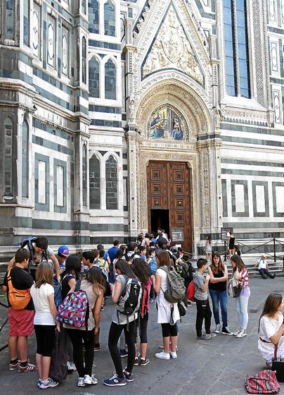 Florentziako turismo bulegoak 72 euro balio dituen txartel bat saltzen du, hiriko museo eta monumentu guztiak bisitatzeko aukera ematen duena 72 orduz. Ilarak egin gabe sartzeko eskubidea ere ematen du, baina ikusi behar da nola ibiltzen diren, txartela lepoan, katedralera presaka sartzen, bisita azkar egiten, argazkiak ateratzen eta korrika hurrengo museora salto egiten, zoroen moduan. Horregatik, ilara luzeen alde nago. Horregatik, urtero 4,8 milioi turista jasotzen dituen Florentzian noizbait bisitari nahikorik ez balego, Udalak figuranteak jarri beharko lituzke ilarak luzatzeko. •