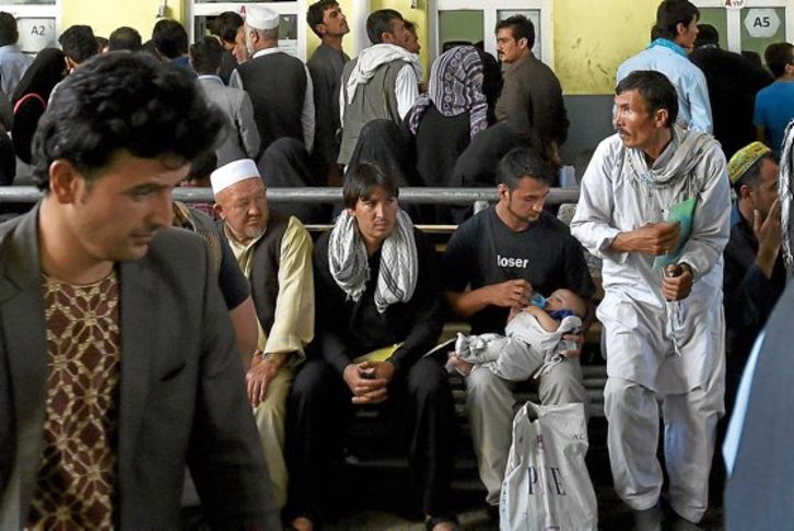«Aditu dut Alemanian siriarrek izaten dutela lehentasuna, baina afganiarrok ere aukera ona dugulakoan nago», esan dio kazetariari pasaporteak egiteko bulegoan zain dagoela. Itxaropen bera dute ondoan eserita dituen dozenaka lagunek.