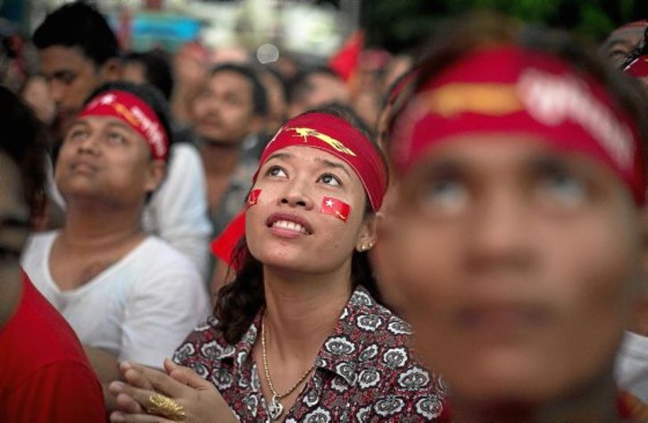 Myanmarko Armadak onartu egin omen du Aung San Suu Kyi hamabost urtez etxean preso izan zuten oposizioko buruzagiaren alderdiak hauteskundeetan lortutako garaipen ukaezina. Boto kontaketa mantso doa baina iturri guztien arabera gehiengo osoa lortuko du NLDk. Alderdi horrek aise irabazi zituen bozak 1990ean ere, baina militarrek kolpea eman eta atxilotu egin zuten Suu Kyi. Oraingoan, Parlamentuko eserlekuen %25 aurrez militarren alderdiaren esku baziren ere, PUSDek ez du antza nahikoa izango gehiengoa mantentzeko. Duela bost urte Myanmarrek hasitako trantsizioa ondo amaituko al da behingoz, berri txarrak nagusi diren mundu eta garaiotan? Agian. Izan ere, Armadak izendatuko ditu ministro inportanteenak eta beto-eskubidea mantenduko du Konstituzioa aldatzeko orduan. Gainera, Myanmarko gutxiengoak, musulmanak barne, ez dira fio Suu Kyi berataz, batez ere azken urteotan izan duen bilakaera politikoa dela-eta.