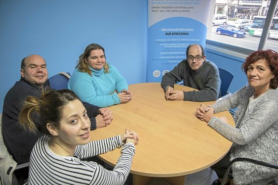 Mikel Moreno Ortzadarreko presidentea da, Marian Correyero eta Josu Santiago zuzendaritzako kideak, Maider Brit gizarte langilea eta Rosa Rubio koordinatzailea. Mahai baten bueltan hartu gaituzte.