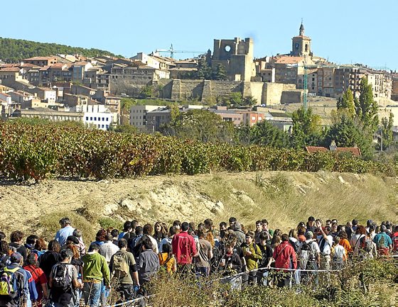 Eta hala hasi ziren ugaritzen asteburuetako planak: Kilometroak eta Korrika soilik ezagutzen genituenok Herri Urratsera edo Nafarroa Oinezera joatera ausartu ginen, eta guk hartutako erabakiak hartu zituzten asko ezagutu genituen bidean. Eta oraindik ere, jendetza lokatzetan oinez ikusten dugunean zerbait pizten zaigu barruan. Akaso ez gaudelako ohituta hainbeste izatera. Norbere mundua euskarari ematea eta euskararen munduak norbere sentitzea. Baina hemen ez dago zuhaitzik eta zelai berderik: mahatsez inguratuta daude Viana eta Lodosa, lautada zabalak ikusten dira inguruan eta lehor daude bazterrak. Eta, hala ere, badira inguru hau euskaraz sentitzen duten haurrak. Badelako euskara bat zilborretik kanpo, topikoetatik kanpo, aurreiritzietatik kanpo, umetako marrazki sinpleegietatik kanpo. Gaztetan klasetik kanpo deskubritu genuen haren modukoa. Euskaraz bizitzea bezain garrantzitsua baita batzuetan bizitzea, eta gainera euskaraz egitea. •