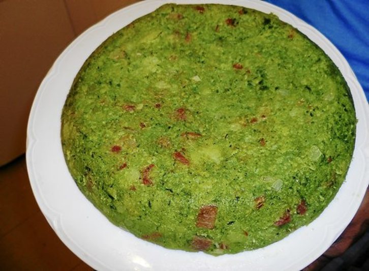 PRESTAKETA1. Patatak zuritu eta zatitxotan ebaki.2. Borrajak ongi garbitu eta zati txikitan ebaki. Izan ere, zatiak txikiak badira, egosi ondoren ez dira ileak nabaritzen.3. Lapiko batean patatak eta borrajak gatz pixka batekin egosi. 15 minutu inguru, bigundu arte.4. Ura kendu eta hozten utzi.5. Kipula eta berakatza lauki txikitxotan ebaki eta oliotan erregosi.6. Urdaiazpikoa moztu eta kipulari gehitu. Sua kendu.7. Sardexka baten laguntzaz, patata eta borrajak zapaldu.8. Kipula eta urdaiazpikoa nahastu patata eta borrajari.9. Zartagina sutan ipini olio tanta batekin, beroa dagoenean nahasketa bota. Opil (tortilla) itxura eman egurrezko koilararekin. 2 minutuz egiten utzi, zarakarra egin arte.10. Ondoren, buelta eman. Kolorea hartu behar du.11. Platerera atera eta, nahi izanez gero, gazta birrinduarekin apaindu.