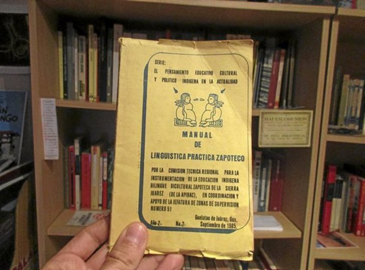 Tortillak mahaira ekarri dizkigu eta logelara sartu da azkar. Opari bat ekarri dit: 1985eko liburutxo horizta bat. Beste lau irakasle eta hizkuntzalarirekin batera, Rebecak egindako alfabeto zapotekoa da, idazketa bateratuaren oinarria izan zena.