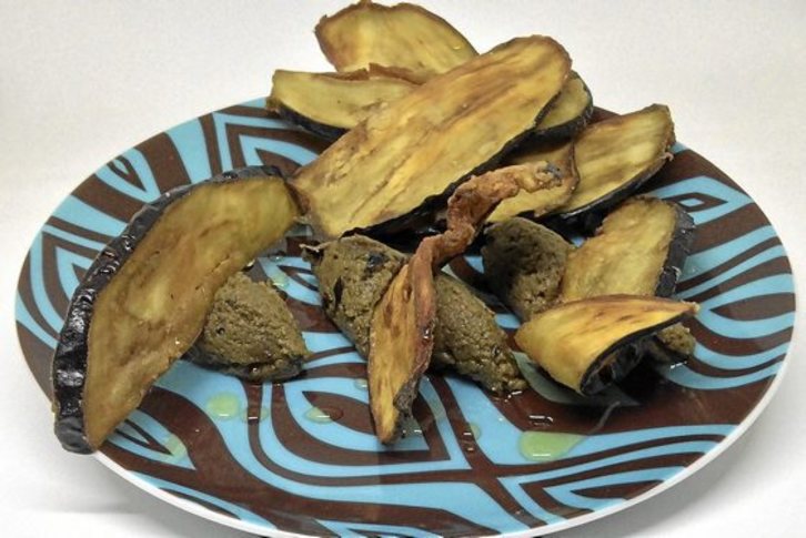 Alberjinia hummus eta chip erara