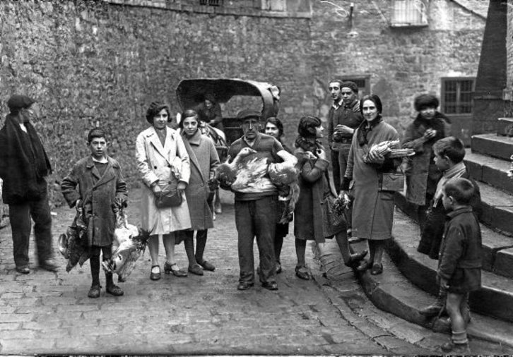 Iruñeko Santo Domingoko Merkatuan dagoen Rincón del Zacatín delakoan egina da argazkia. Duela zenbait mende, txoko hori ganadu-uraska zen, ondoren merkatuko zabortegia eta azkenik, «zacatín», arropa-azoka alegia, oihalak eta arropak saltzen baitzituzten. XIX. mendearen erdialdera, azokan haragi eta barazki saltokiak kabitzen ez zirenean, horiek txoko horretarantz hedatzen ziren. 1930eko irudian, kapoiak eta ahateak merkatuan saltzera daramatzan lagun talde bat ageri da, eta haien atzean, Manueta kaletik merkaturantz doan tarranta bat. Argazkiaren egilea Jose Galle da (1898-1983), Valladoliden jaiotako argazkilaria. Madrilen eta Donostian hasi zen lanean, eta ondoren Iruñean bizitzen jarri zen. Blanca de Navarra kalean zuen estudioa, eta gerra zibilera arte bere anaiorde Rafael Bozano argazkilariarekin elkartuta lan egin zuen. Batez ere argazki erreportajeak egin zituen, konposiziorako sen nabarmena zuela. Jose Galle Nafarroako eta Estatuko hainbat egunkari eta aldizkaritako berriemaile grafikoa izan zen. Nafarroako hiriburuak XX. mendearen lehen erdian izan zuen bilakaeraren lekuko dira haren argazkiak. Haren seme Fernandok argazkigintza negozioarekin jarraitu zuen.