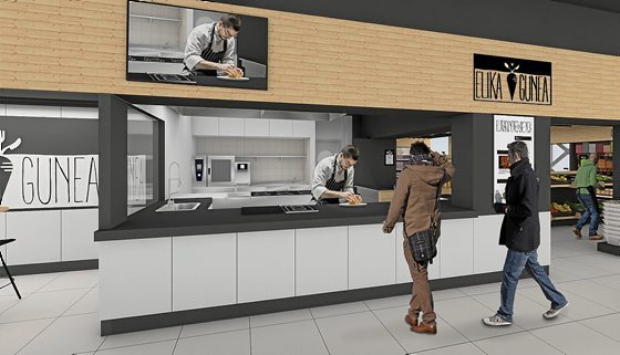 Elikagunearen baitan Basque Label Harategia izango da. Harategi eta janari espazio bat eta euskal flotek arrantzatutako arrain ontziratua. Horrez gain, plater prestatuak egiteko obradore bat ere izango da, jendearen begietara guztiz irekia. Asmoa da azoka plazako produktuekin platerak prestatzea, herritarren aurrean, gardentasun osoarekin.