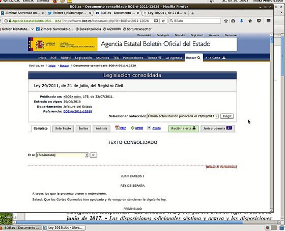 2011n Erregistro Zibileko erredakzioa aldatu zuten, baina arazoa besterik da, erredakzio berria ez baita indarrean egongo ekainaren 30a arte, eta indarrean balego ere, ez luke kontu hori erabat argituko, Erregistroko langileek arazo bera izaten segituko omen dute eta. Oraingo testuak dio debekatutako izenen artean «los que hagan confusa la identificación y los que induzcan en su conjunto a error en cuanto al sexo» daudela (identifikazioa nahaspilatu eta sexuaz denaz bezainbatean oro har okertzera eragiten dutenak); uztailetik aurreragokoak –«baldin eta ezartzen bada»–, berriz, «...los que hagan confusa la identificación», identifikazioa nahaspilatzen dutenak, alegia.