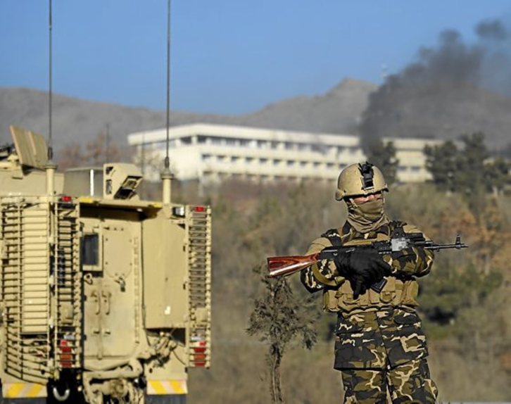 Aurreko asteburuan, sei kidez osatutako taliban komando bat Kabuleko eraikinik babestuenean sartu zen: Intercontinental Hotelean. Talde armatuko kideak gelaz gela «kanpotarrak ehizatzen» aritu ziren amaierarik gabeko hamabi ordu luzeetan. Bezero batzuek leihoetatik salto egiten zuten. Beste batzuk, talibanek harrapatu eta hil zituzten: tiroka batzuk eta lepoa moztuta besteak. Erasoaldiaren ondorioz 40 inguru izan ziren hildakoak, ia erdia kanpotarrak. Talibanek aldarrikatutako erasoak Kabulen indarrean dauden segurtasun neurriak kolokan jarri dituzte. Erabat. Intercontinental Hotelaren kasuan, gainera, mertzenario atzerritarrez osatutako konpainia pribatuen “profesionaltasuna” geratu da zalantzan. Izan ere, Afganistango Estatuarena den Intercontinental Hotelaren segurtasuna Kabul Balkh Safety Security konpainiak hartu zuen bere gain abenduan. Bada, erasoa bertatik bertara bizi izan zuten hainbat kazetarik inolako kontrolik ez zegoela salatu dute. Pribatizatzen diren gerren eta azpikontrata militarren ondorio latzak...