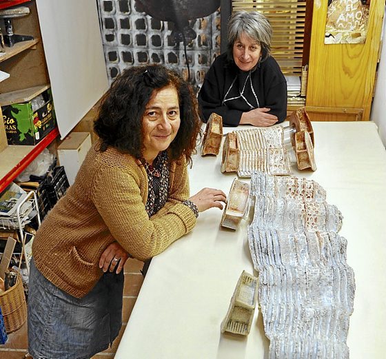 Artisautzatik artera. Buztina, gaurkora ekarrita, goi tenperaturan eta beste material batzuekin nahastuta. Txaro Marañon eta Koro Martinez zeramikarien obrak etengabeko bilaketaren emaitza dira. Materialak eta teknikak ikertzen dituzte adierazpiderik egokienaren, beren hausnarketen euskarri artistiko ederrenaren bila.