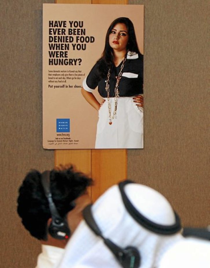 Filipinetako langileek Kuwaiten bizi duten egoera ulertzen laguntzen du Indiako langileen inguruan Middle East Eye hedabideak orain urtebete egin zuen txostenak, bizirik atera diren batzuekin hitz egin ondoren. Sindhu Prassannak honakoa kontatu zien ikerlariei: «Egun batean jaten ari nintzela niri deika ari zirela aditu nuen. Pazientzia agortu eta senarra korrika etorri zitzaidan, buruan eman zidan eskuekin eta ostikoka hasi zitzaidan gero. Lurrera erori nintzen». Saudi Arabiako hego-mendebaldeko Abha hiriko familia batekin izan zuen esperientzia da Prassannak azaldutakoa: «Edozein txorakeriarengatik egurtzen ninduten. Hemeretzi ordu egiten nituen lanean egunero, goizeko lauretatik gaueko hamaikak arte, eta beraiei sobratutakoa baino ez zidaten ematen jateko. Sei hilabete egin nituen horrela eta etxera esku hutsik itzuli behar izan nuen azkenean».