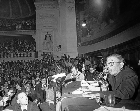 Filosofoen iraultza ere izan zen, ideiena. Jean-Paul Sartre Renault etxearen fabrika aurrean kaiola batean sartuta, langileei ikasleekin bat egin zezatela gau eta egunez eskatzen, edo Michel Foucault bozgorailua eskuetan asanbladetan. Egoera horien lekukotza ematen duten argazki eder askoak badira. Jatorri anarkista, libertarioa, surrealista eta situazionista zuten lelo pilo batek hartu zituzten Pariseko paretak, hitza zuten paretak.