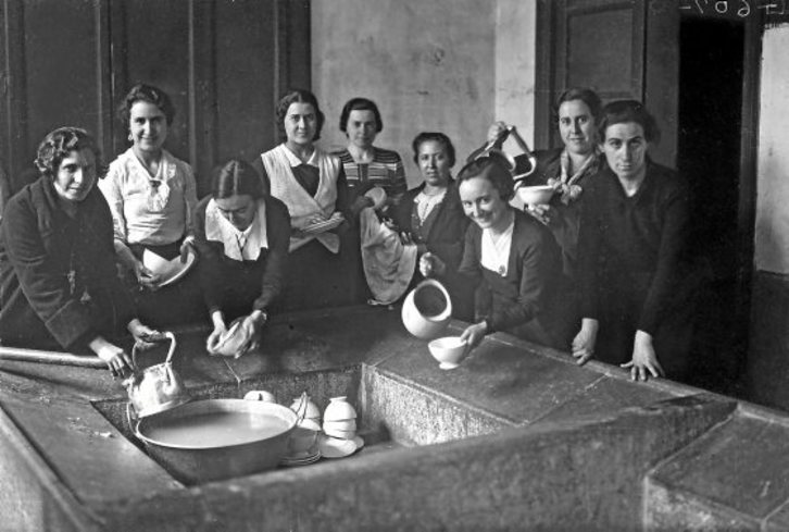 Argazkia Iruñean egina da, XX. mendearen erdialdera. Emakume talde bat ageri da, harraska batean ontziak garbitzen. Lana egiten duten bitartean, posatu egiten dute argazkilariarentzat. Egilea Jose Galle Gallego argazkilaria da (Valladolid, 1988 – Iruñea, 1983). Madrilen hasi zuen bere ibilbidea, Donostian jarraitu eta azkenik Iruñeko Zuria Nafarroakoa kalean estudio bat zabaldu zuen 30eko hamarkadan, 36ko Gerra baino lehen, bere anaiorde eta halaber argazkilari Rafael Bozanorekin batera. Urte batzuk geroago, bakoitzak bere bideari jarraituko zion. Jose Gallek bere estudioan jende askori egin zizkion argazkiak eta gizarte erreportajean ere jardun zuen; besteak beste, bere irudietan Iruñea jasaten ari zen aldaketak jaso zituen eta Estatuko zenbait hedabiderentzat lan egin zuen berriemaile grafiko gisa.