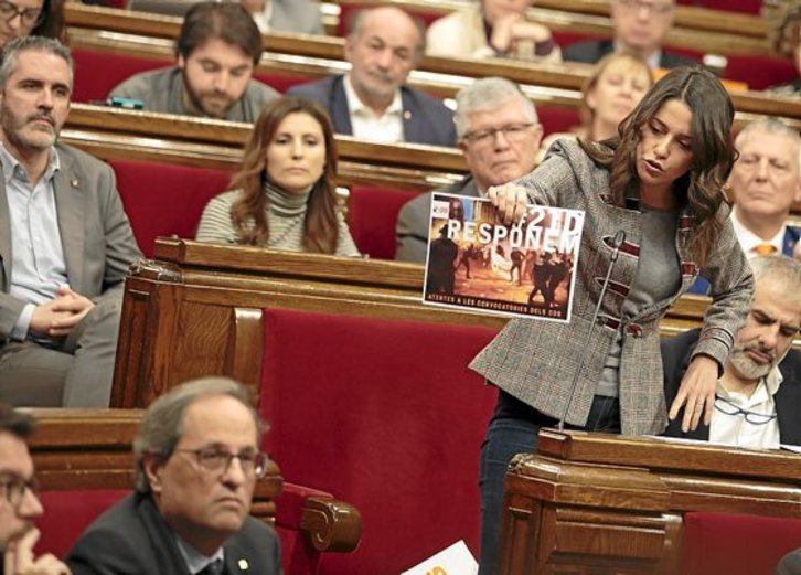 2017ko abenduaren 21eko hauteskundeak independentismoak irabazi zituen arren –oso momentu zailean gainera–, Parlamentu berriko indar nagusia unionista da. Eta ez edozein, gainera: Ciudadanos. Ines Arrimadas buru, alderdi laranjak osoko bilkurak oztopatu eta dialektika desterratu du. Aurreko urteetan bai independentismoak bai unionismoaren zati batek diskurtsiboki emandako maila altuaren arrastorik ez da antzeman aurten Parlamentuan.
