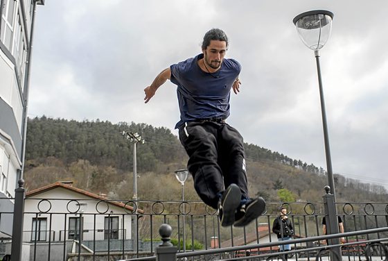 Mihai ados dago. «Batzuetan komeni da modu kontrolatuan erortzea eta horrela erortzen ikastea. Horrek berak konfiantza ematen dizu salto bat egiteko orduan».