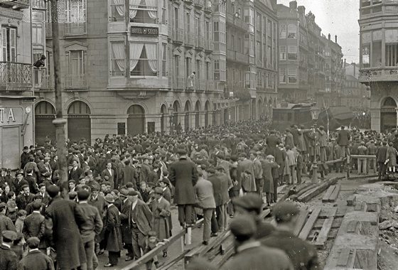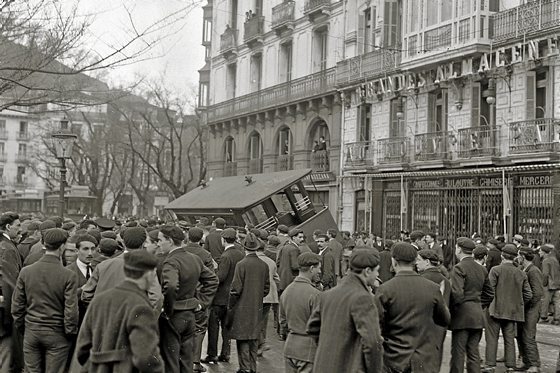 1916ko abenduaren 18an, sindikatuek 24 orduko greba deitu zuten Estatu espainol osoan, gerraren aitzakian premiazko artikuluak asko garestitu zirelako. Bezperan, langile elkarte antolatzaileek grebarekin bat egin zutenen berri eman zuten Donostiako Antzoki Zaharreko mitin batean eta, era berean, Gipuzkoako Gobernu Zibilak hilaren 18ko manifestazioa debekatu izanaren gainean aritu ziren. Besteak beste, Guillermo Torrijosek hitz egin zuen, greba «langile antolatuen indarra erakusteko ekintza gisa» arrazoituz eta haren beharra nabarmenduz: «Gobernuak greba kontuan hartu eta proletarioen eta erdi-mailako klasearen eskaerei erantzun behar die». Tokiko hedabideen arabera, lanuztea orokorra izan zen. Guardia Zibilaren kargak izan ziren, eta Armadaren Sizilia Erregimentua hiriko hainbat tokitan hedatu zen. Manifestariek tranbia batzuk irauli zituzten Getaria eta Hernani kaleetan, eta Amarako geltokian tren bat ere irauli zuten, bagoi eta guzti. Guardia Zibilak, Getaria kaleko karga batean, emakume bat zauritu zuen buruan, sable kolpe batez. Kargen ondoren, zauritu ugari artatu zituzten larrialdietan, eta egun hartan atxilotu zituztenetatik 28 lagun Ondarretako kartzelara sartu zituzten. Ricardo Martinen argazkietan, greba eguneko zenbait une.