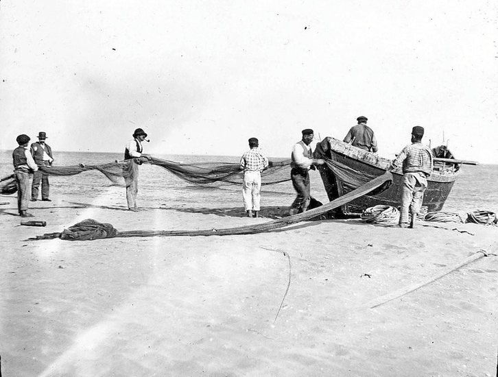 Eugene Trutat Okzitaniako Tolosako geologoak (1840-1910) euskal herri ugari jaso zituen bere argazkietan; besteak beste, Hondarribia, Baiona, Biarritz eta Donibane Lohizune. Hemeretzi urte zituela hasi zen argazkigintzaren munduarekin harremanetan, eta argazki teknikei buruzko artikuluak argitaratzen zituen aldizka. Halaber, Trutatek Pirinioen esplorazioan parte hartu zuen, hango glaziarrak aztertzen. Tolosako Argazkilari Elkarteko lehendakaria eta hiri bereko Natura Zientzien Museoko zuzendaria izan zen. Garai baten testigantza paregabea utzi digu Trutaten argazkigintza antropologiko eta dokumentalak. Tolosako Historia Naturaleko Museoan, Udal Liburutegian eta Udal Artxiboan daude gordeta Trutaten 20.000 negatibo inguru eta autokromo batzuk (koloretako lehen irudiak). Donibane Lohizunen arrantzaleak sareak jasotzen ageri diren argazki hau XIX. mendearen amaieran dago egina.
