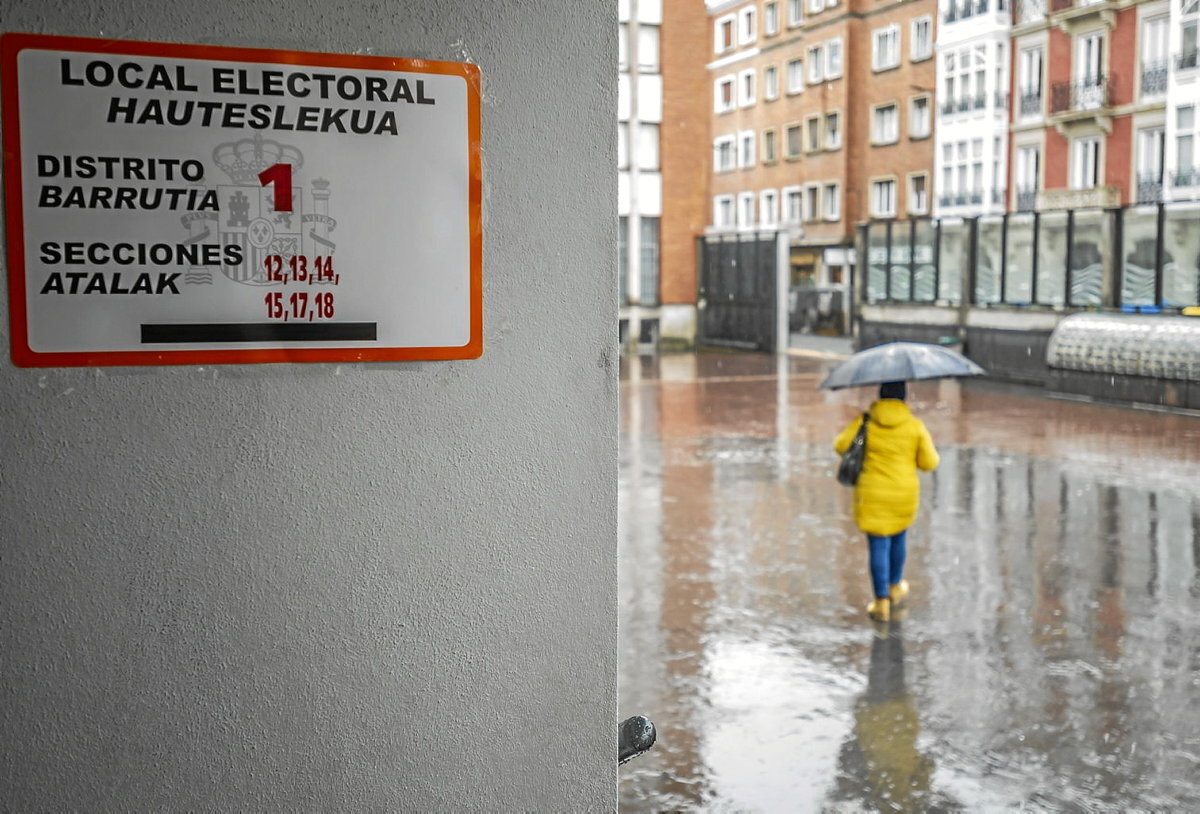 Emakume bat, Gasteizko hautesleku batetik ateratzen, 2019ko azaroko estatu hauteskundeetan (Jaizki FONTANEDA / FOKU)