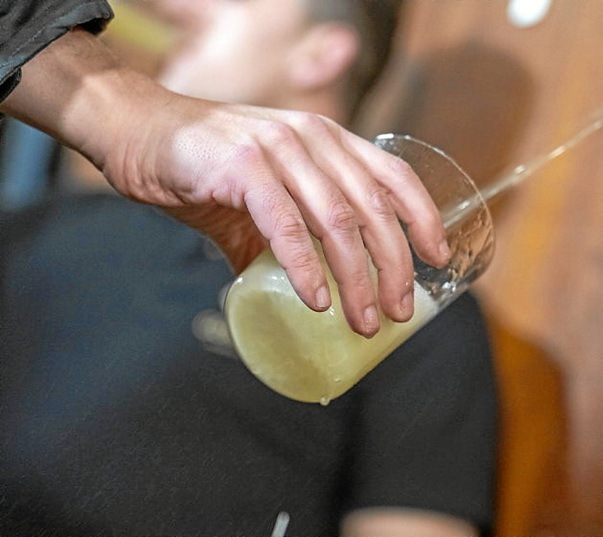 Hasi berriari sagardoa hartzeko arauak azalduko zaizkio. Nola jarri behar duen basoa, ilara nola errespetatu… eta esperientziadunak aditu papera hartuko du: estetika bat sagardoa hartzeko, gorputza jartzen da, begirada, eta besoa modu batean altxa, basoan txinparta apurtzeko… eta gero dastatzeko, segundo batzuetan bertan kontzentratuko da, sagardoa eta bere arteko momentu intimoan. Dastamen giroa sortzen da: hartu, ikusi, usaindu… besteengatik bereizi, gero itzuli eta elkarrekin komentatu. Potentziala du giro horrek.