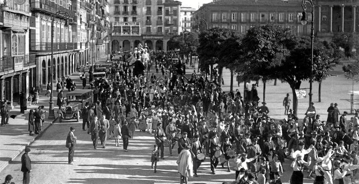 1930eko irailaren 27an Euskararen Eguna ospatu zen Iruñean, “Euskeraren Adiskideak” elkarteak antolatuta. Goizeko lehen orduetatik, Iruñea eta Gasteizko txistulariak, Iruñea, Lizarra eta Etxarri Aranazko gaiteroekin batera, Nafarroako hiriburuko kale nagusietan zehar ibili ziren. Iruñeko eta Nafarroako beste herri batzuetako erraldoien konpartsek, hala nola Lizarra, Tafalla, Zangoza eta Tuterakoak, egun horretan antolatutako ekitaldietan parte hartu zuten, baita Cortes, Aldaz eta Leitzatik etorritako dantzariek ere. Jardunaldiari amaiera emateko, Olinpia antzokiak Saski Naski taldea hartu zuen. Hurrengo egunean, prentsak ospakizunaren eta izandako arrakastaren berri eman zuen, eta R.P. Damaso de Inza apaizak Aita Berrerosleen Elizan euskararen eguna zela-eta egindako mezan egindako sermoia nabarmendu zen, «... euzkeriko hizkuntza, gure antzinako tradizioen tresna nagusia...» goraipatu baitzuen.