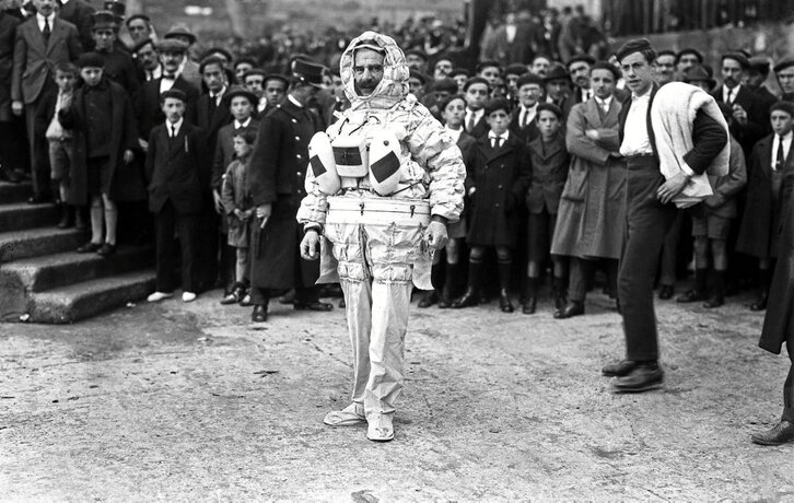 1918ko urriaren 20an egindako argazkia bitxia da, inauterietako irudia dirudi. Jende ugari bildu zen Donostiako Klub Nautikoaren aurrean, Ricardo Mediamarcak diseinatutako salbamendu jantzi berritzaile baten proba ikusteko. Egun hartan, asmatzaileak, Irene Wilmer igerilari ingelesarekin batera, uretara jauzi egin zuen Donostiako portuan, asmakizun berriaren eraginkortasuna ebaluatzeko, eta emaitza positiboak eman zituen. Tokiko prentsak hurrengo egunean jasotzen zuenez, «...amildegian hondoratzeko ahalegin guztiak alferrikakoak izan ziren, baita asmo txarreko pertsona batzuen ahaleginak ere, beherantz bultzatu nahian. Dimisioa emateari uko egiten dion edozein politikarik bezala flotatzen zuten...». Salbamendu jantzi berritzaile honek hainbat patrika zituen alboetan, elikagaiak eta ura gordetzeko diseinatuak. Erakustaldiaren ondoren, publikoak asmatzailea txalotu zuen bere sorkuntza bikainagatik.