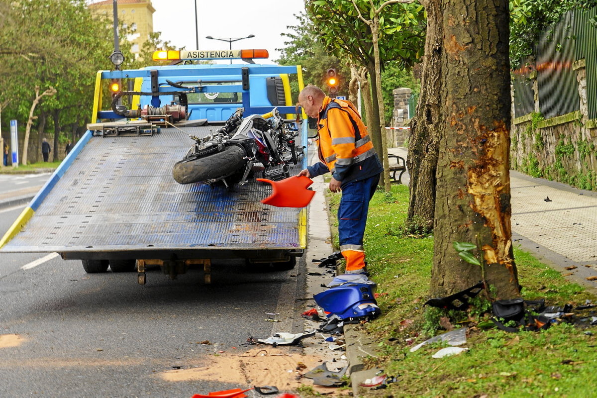 Langile bat, 2023an, Donostian izandako moto istripu baten arrastoak garbitzen. (Gorka RUBIO / FOKU)