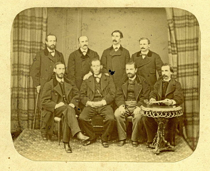 1866ko urtarrilean, Nafarroako Diputazioa partzialki berritu zen, eta bertako kideak Iruñeko lehen argazki-estudioetako batean izan ziren, Coyne izenekoan. Urte bereko ekainean, Nafarroako Diputazioak Araba, Gipuzkoa eta Bizkaikoei proposatu zien unibertsitate bat sortzea, besteak beste, «...amor a las instituciones del solar euskaro» izango zuena. Elorz (Tafalla), Zabalza (Iruñea), Fortun (Lizarra) eta Calatayud (Agoitz) diputatuek bidali zuten unibertsitate proiektua, beste batzuekin batera, gainontzeko euskal aldundietara. Nafarroako Diputazioak martxan jarri nahi izan zuen beste proiektuetako bat euskal banku bat sortzea izan zen. Coyneren argazkian, eserita agertzen dira Leon Eusebio Elorz, Tafallako diputatua; Nicasio Zabalza, Iruñeko diputatua eta Diputazioko presidenteordea; eta Fortunato Fortun, Lizarrako diputatua -laugarrena ezin izan dugu identifikatu-. Haien atzean ageri dira, zutik, Mauricio Bobadilla, Tuterako diputatua; Alberto Calatayud, Agoizkoa; Angel Saenz de Tejada, Lizarrakoa; eta Juan Jose Barberena, 1866ko otsailean Iruñeko diputatu karguaz jabetu zena.