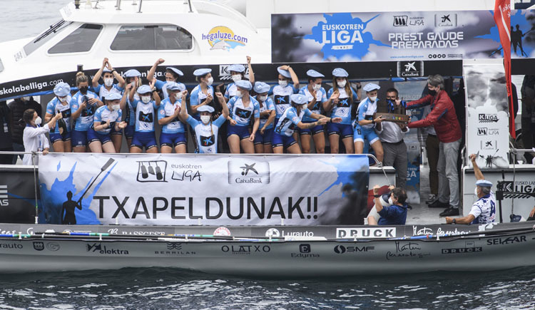 Si la Liga Eusko Label está siendo igualada, ¿qué podemos decir de la Liga Euskotren? Se acabó la «tiranía» de Orio, que en Zarautz cedía su trono a Arraun Lagunak, nuevo campeón de la máxima categoría femenina, a pesar del empate final a 39 puntos. Una bandera ha marcado la diferencia, una bandera de más que ha conquistado la «Lugañene» ha servido para que haya un nuevo vencedor en la Liga Euskotren.
