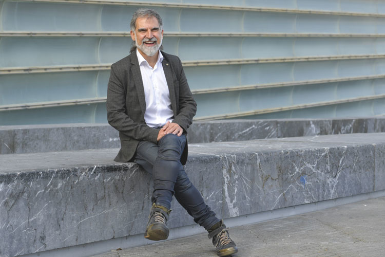 Apenas necesita presentación. El presidente de Òmnium Cultural, Jordi Cuixart (1975, Santa Perpètua de la Mogoda), es una de las pocas figuras de consenso en el independentismo catalán; el más consciente, probablemente, de su papel como preso político, algo de lo que habla aprovechando su visita a Euskal Herria en el contexto del décimo aniversario de Aiete.