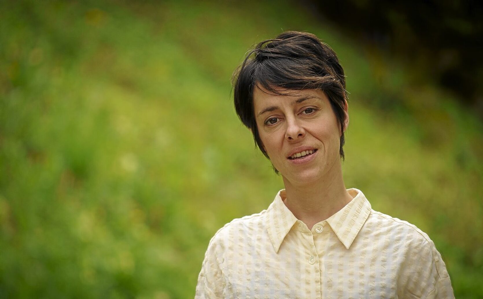 Con ojos ojerosos y con un cansancio notable, una pausa para el café mientras llega nuestro fotógrafo. ‘¿Dentro o fuera?’... ‘¿Tienes tabaco de liar?’, ‘Sí’, ‘Pues entonces, fuera’. Un café cortado, una infusión y una botella de agua. Se lía un cigarrillo y comenta el trajín de las últimas semanas. Es viernes y mañana acude todo el equipo a Barcelona a otro preestreno. Son los compromisos del lanzamiento de una película que, antes de ser estrenada, ya está saboreando las mieles del éxito. Pero la directora alavesa se muestra muy agradecida con el feedback que ha tenido con las pocas personas que han visionado el film. Está cansada, pero es cansancio del bueno, del placentero.