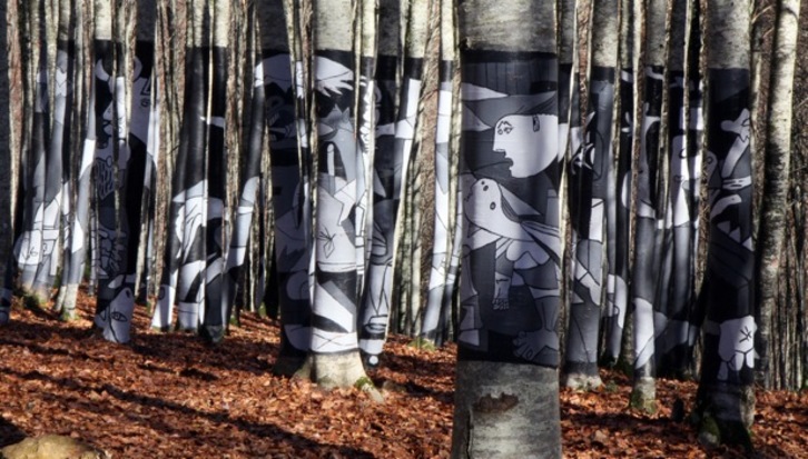 Además de pintar –con material degradable por la naturaleza– el ‘Guernica’ gigante en la corteza de las hayas, Alduide Mendia Koordinakundea ha emprendido una campaña de «apadrinamiento» de los árboles de Antzeri. Consiste en adoptar un haya, al que se le coloca una cinta con el nombre del donante, que entrega diez euros para hacer frente a los gastos derivados de los recursos judiciales. Ya son más de un centenar las cintas colocadas, y quien desee apadrinar puede dirigirse a la dirección zilbetiapadrina@hotmail.com.