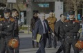 La Policía Foral ha desplegado un fuerte dispositivo policial en la puerta del juzgado con motivo de la declaración de Sanz como imputado en la causa que investiga el cobro de dietas de Caja Navarra.