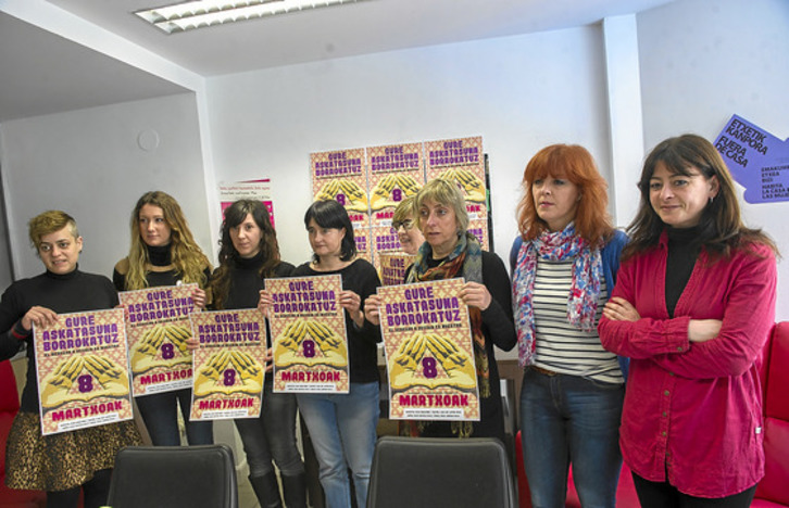 Bajo el lema ``Gure askatasuna borrokatuz. El derecho a decidir es nuestro'', la declaración denuncia que se trata de «imponer y recrudecer el sistema heteropatriarcal» con «sucesivos decretos, reformas y recortes sociales» que suponen «un ataque sin precedentes a los derechos de las mujeres ganados a pulso durante décadas». Dicho retroceso «ha culminado» en el proyecto de reforma legislativa sobre el aborto que, en su opinión, supone «una auténtica declaración de guerra» contra las mujeres que «no solo se limita» a quitarles su «derecho al aborto» sino que trata de imponer «un modelo de feminidad» según el cual su «función principal» es la reproducción, siempre «dentro del marco de la heterosexualidad».