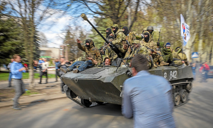 Los hechos ocurrieron a primera hora de la mañana en la ciudad de Kramatorsk. Una columna compuesta por seis blindados de combate de la 25 brigada de paracaidistas del Ejército ucraniano se vio bloqueada por la multitud en las calles de la ciudad. Tras varias horas de conversaciones los soldados colocaron la bandera rusa en sus vehículos y se unieron a los activistas prorrusos. Tras ello los vehículos se dirigieron a la ciudad de Slovyansk para reforzar la defensa del lugar. A su llegada, una multitud aclamó a los militares y a la milicia. Con esos vehículos en poder del bando prorruso, las fuerzas de Kiev van a tener mucho más difícil el asalto de los bastiones rebeldes.