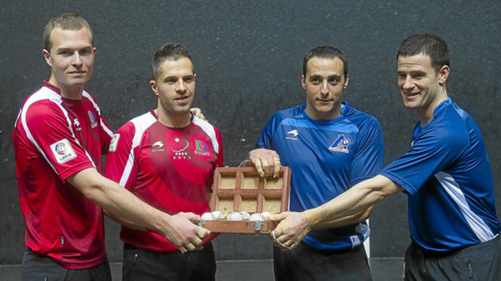 Olaizola II-Aretxabaleta y Martínez de Irujo-Barriola ya tienen material para la final del Parejas que protagonizarán el domingo en el frontón Bizkaia. Los colorados escogieron tres pelotas algo más pesadas que las de sus rivales (106-106,5-106,9 gramos por 104,7-105,4-105,6), y todos coincidieron en señalar que las de Juan y Abel son algo más vivas, mientras que las de Aimar y Andoni tienen menos salida.