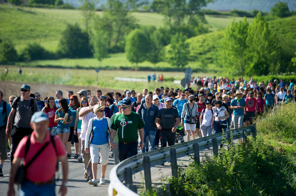 El sol ha acompañado, y mucho. A veces demasiado. Pero el tiempo no ha sido impedimento para establecer el «campamento» en una cuneta, un parque o simplemente, allá donde se ha podido. Bebidas, hamaiketako y la espera ha sido mucho más llevadera. La música también ha ayudado a los ciudadanos que ya desde sus casa han llevado cargada la mochila con el deseo de poder decidir libremente su futuro. Cánticos, trikitilaris, gigantes y grandes ikurriñas han ambientado el recorrido.