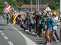 El momento culminante ha llegado de 12.00 a 12.30, cuando todos los eslabones se han unido y se ha conformado la gran cadena humana. En un ambiente festivo, los participantes han dado cuerpo a la iniciativa y han permanecido unidos durante media hora. En algunos puntos la cadena ha sido doble, dado que no cabían todos. Las «olas» se han sucedido de forma permanente a lo largo del recorrido, donde los mensajes a favor del derecho a decidir han sido numerosos. En Goierri, los segalaris han cortado la hierba de una campa donde se podía leer ‘Erabakitzeko eskubidea’, mientras que el mensaje se repetía en las faldas de Udalaitz.