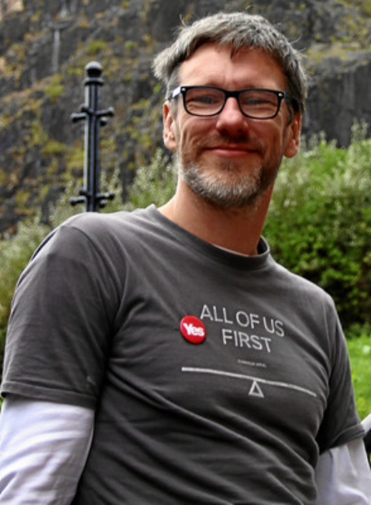 Robin McAlpine se define como estratega político, y es a ello a lo que dedica su vida. Además de director de la Fundación Jimmy Reid, es editor de la revista política ‘‘Scottish Left Review’’. Entre acto y acto de los últimos días de campaña, hace una parada en Edimburgo para atender a GARA en la céntrica plaza de Grassmarket, en las faldas del castillo que corona la capital escocesa.