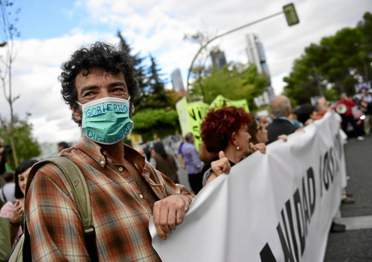 Frente al Carlos III, en la concentración celebrada ayer para denunciar su desmantelamiento y las erráticas decisiones políticas que han llevado al primer contagio del virus en Europa, había mucho enfado. Palabras incendiarias como las de Javier Rodríguez, consejero de Sanidad de la Comunidad de Madrid, que apuntó directamente a la sanitaria contagiada, no hicieron sino calentar el ambiente. «Puede que la enfermera mintiese. Aunque eso ya es cosecha mía», aseguró, al comparecer ante el parlamento autonómico, casi en el momento en el que la concentración cortaba la calle.