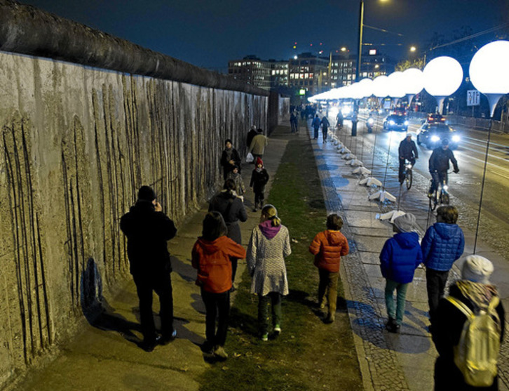 Desde el viernes, unos 8.000 globos iluminados muestran en Berlín el recorrido de la frontera que partió en dos la capital alemana y en la que perdieron la vida entre 138 y 245 personas. De hecho, la valla divisoria ha desaparecido casi por completo, pero el país sigue estando muy dividido, tal y como revela la Fundación Bertelsmann en un reciente estudio.