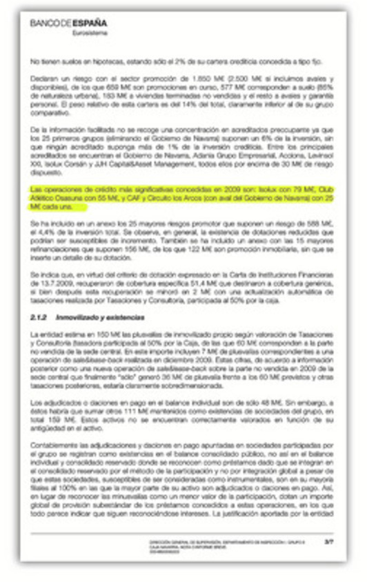 El Banco de Epaña recoge en un informe fechado a 23 de febrero de 2010 que uno de los créditos más importantes de CAN en 2009 fue un préstamo a Osasuna de 55 millones. En el club no saben nada de este dinero y la consejera de Hacienda asegura que «no encaja».
