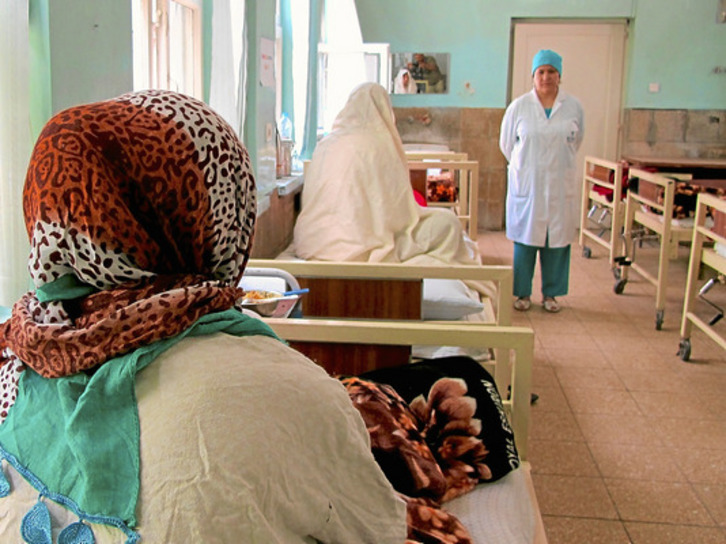 «Cuando estaba a punto de parir tuve muchísimos dolores pero la carretera a Kabul estaba cortada y me tuvieron que llevar hasta Bamiyán, a 150 kilómetros al oeste de Kabul». Sentada cuidadosamente sobre la cama para no obstruir el catéter que evacua unos últimos restos de orina, Rukia explica a GARA que su hijo murió en su vientre, y que una negligencia médica agravó aún más el desenlace.