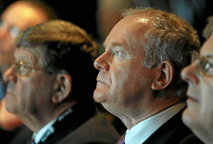 McGuinness explicó que su formación había firmado el llamado Acuerdo de Stormont a finales del pasado año, tras varias semanas de intensas negociaciones sobre varios asuntos que mantenían bloqueado el proceso de paz, que garantizaba un presupuesto extraordinario del Gobierno de Londres de 2.500 millones de euros. Los republicanos consideraban que este incremento garantizaba las ayudas sociales en el norte de Irlanda, evitando las políticas de austeridad impulsadas por los conservadores británicos.