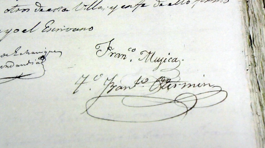 Firma del bisabuelo de Pepe Mujica en el contrato de viaje cuando embarcó hacia América, en 1842. (Gotzon ARANBURU)