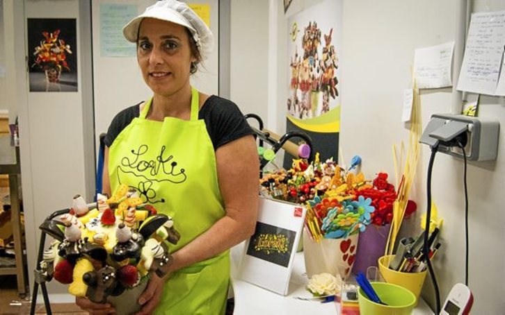 Loli Callero y Ángel Rodríguez llevan un cuarto de siglo al frente de las fruterías Frutas la Huerta de Pamplona. Hace cinco años pusieron en marcha Loreki, adaptando una idea presente en Estados Unidos: ramos y centros de fruta fresca bañada en chocolate.