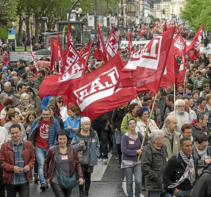 Pese a la diversidad de convocatorias de sindicatos y organismos sociales –que llegaron a coincidir en las calles de Iruñea, Bilbo o Donostia–, la celebración del Primero de Mayo en Euskal Herria tuvo un denominador común: la denuncia de la pobreza y la precariedad que afecta a cada vez más ciudadanos, tanto parados como en activo.