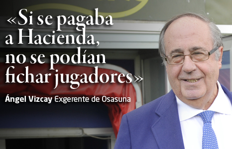 El exgerente de Osasuna, Ángel Vizcay, tuvo un arranque de sinceridad después de que una auditoría del Consejo Superior de Deportes detectara fugas de dinero a paraísos fiscales. Confesó que el fin de esas partidas (por valor de varios millones y que ahora se investigan bajo secreto de sumario) era amañar partidos. De paso, afloraron los detalles de cómo se acumularon 53 millones de euros hasta el año pasado, a lo que hay que añadir el aumento de entonces a esta parte, que vienen a ser otros 20 más. Y es que, directamente, Osasuna dejó de pagar el IVA un mes, luego otro y, al poco, pasó por completo de Hacienda. Y el Gobierno fue concediendo aplazamientos en un evidente trato de favor. Vizcay acabó reconociendo públicamente diciendo que Hacienda hizo la vista gorda, incluso confesó que hay un inspector que que, tras detectar que había fugas de dinero para comprar partidos, les aconsejó la mejor forma de taparlo. (ARGAZKIA: Idoia ZABALETA)