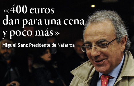 Sanz soltó esta perla en 2008, al hilo de la decisión de José Luis Rodríguez Zapatero de repartir a todos los contribuyentes 400 euros. ¡Cómo han vivido (y cenado) algunos! Y de los impuestos de todos. En unas elecciones se vota por muchas cosas: por afinidad política, imagen de gestión, identidad nacional, religión, creencias, proyectos concretos... Y hay quien se aprovecha y se sigue aprovechando. Para que Sanz pudiera seguir con su sibaritismo gastronómico, UPN lo puso al frente de Audenasa, la empresa semipública de autopistas. Y su amigo Enirque Goñi, el exdirector de CAN, lo puso al frente de Bodegas Sarría pese a tener solo conocimientos enológicos a nivel de usuario. Sus contactos con VW lo auparon al consejo de administración de Truck and Wheel. Curiosamente, también aparece en el consejo de Servicios Ecológicos de Navarra, una empresa especializada en deshacerse de vertidos tóxicos con una ubicación sorprendentemente cercana a MercaIruña, el lugar donde desembocan los alimentos frescos que abastecen a media Nafarroa. Y a pesar de todos estos cargos, cobró cesantías por dejar de ser presidente de Nafarroa hasta que se le agotaron –un 80% del sueldo de lo que antes cobraba, durante dos años–. (Jagoba MANTEROLA-ARGAZKI PRESS)